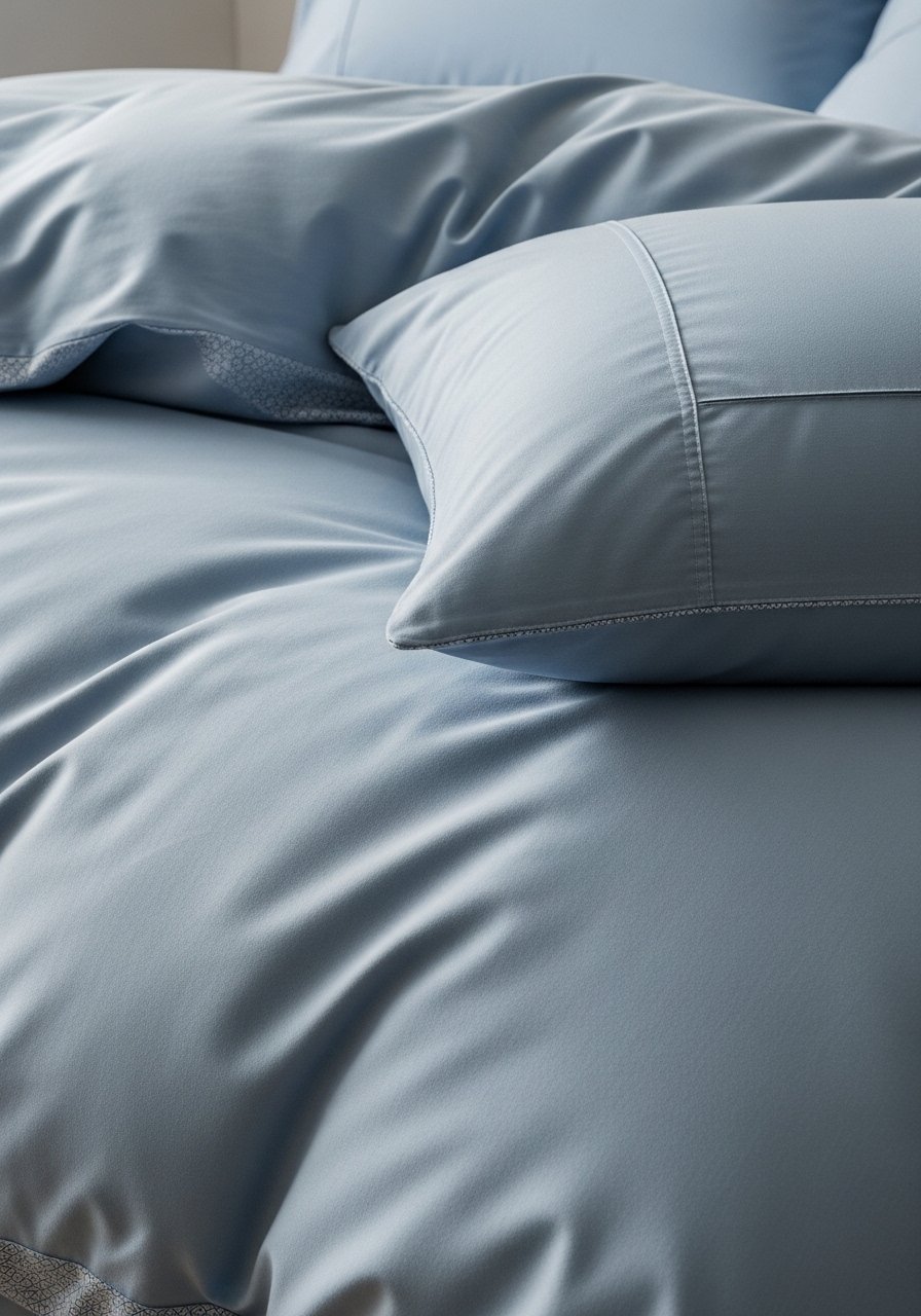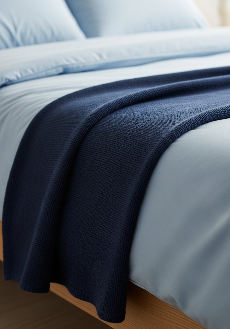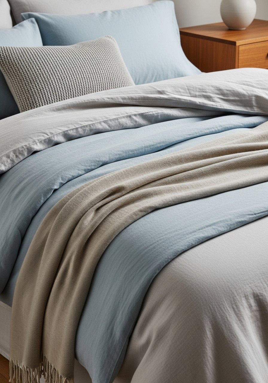 I stopped buying matching sets and started layering textures: a light blue linen duvet, off-white cotton sheets, and a chunky knit throw. The contrast of textures keeps the blue soft and homey. I once bought a shiny blue duvet that looked great in the catalog but felt plastic in bed — lesson learned.
