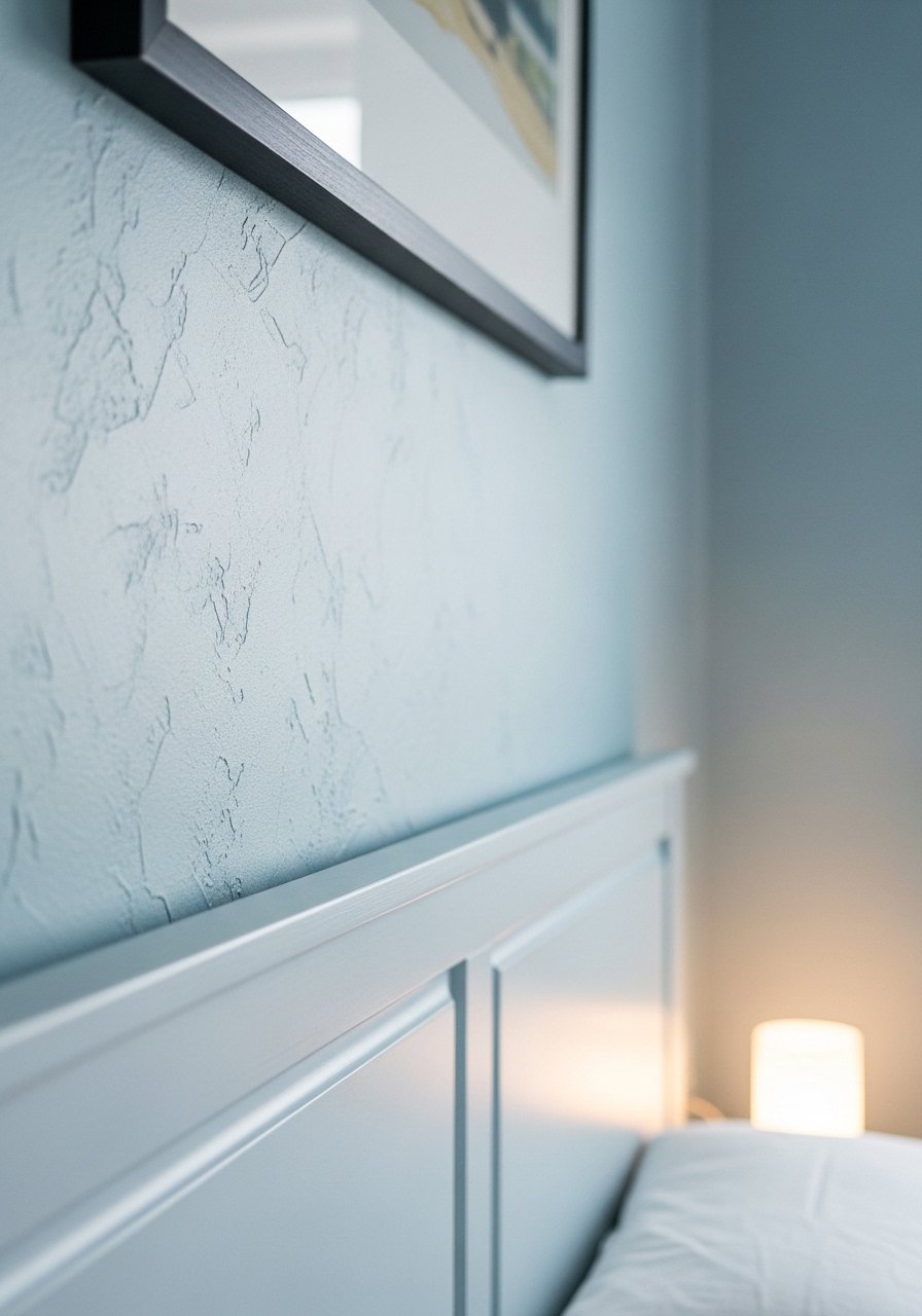 I painted only the wall behind the bed in a soft blue and left the rest neutral. That single wall made the bed feel anchored without turning the whole room blue. My first attempt used a high-gloss finish — it highlighted every brush mark. Satin finish solved that.
