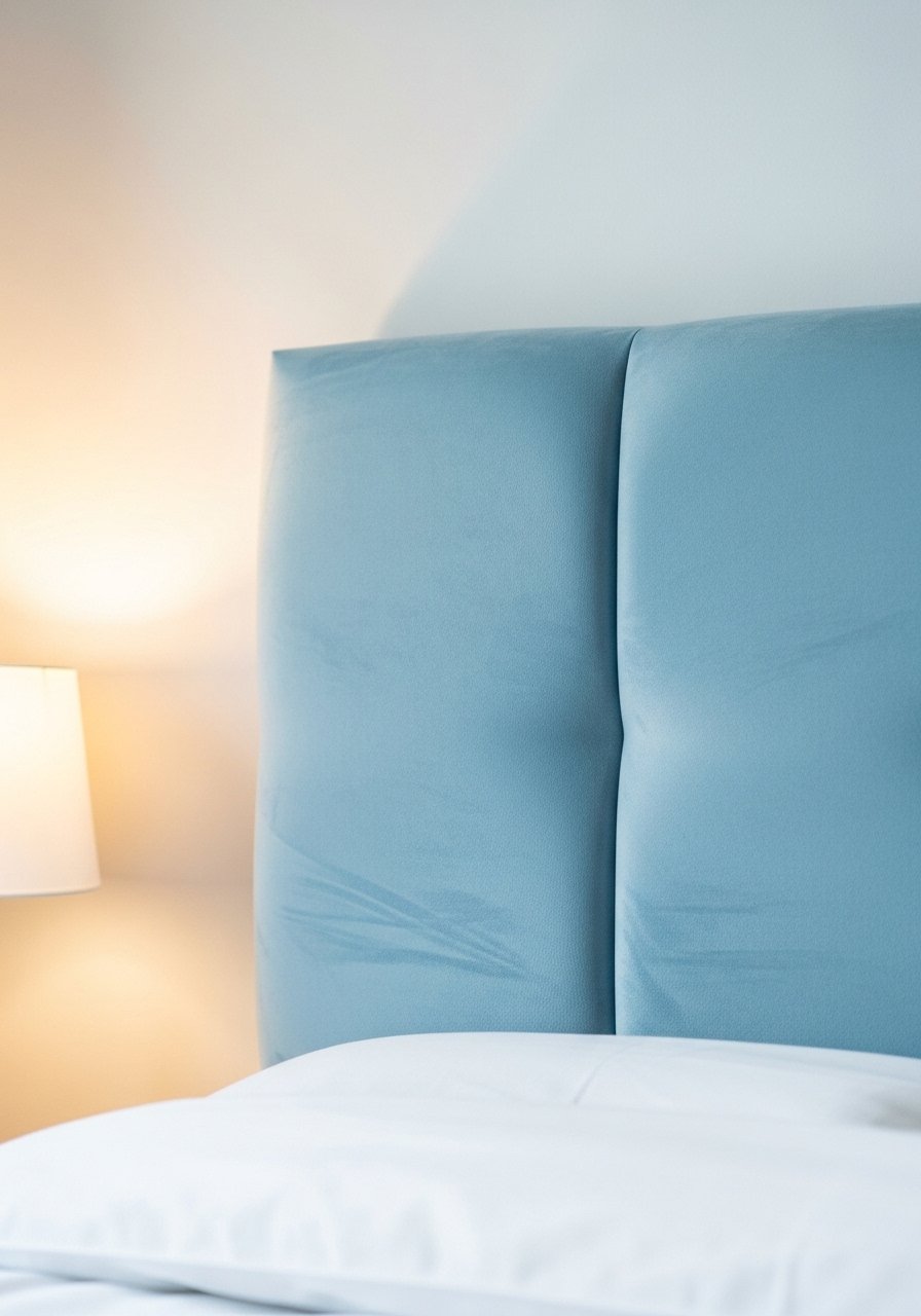 5. Blue Velvet Headboard for a Touch of Soft Luxury