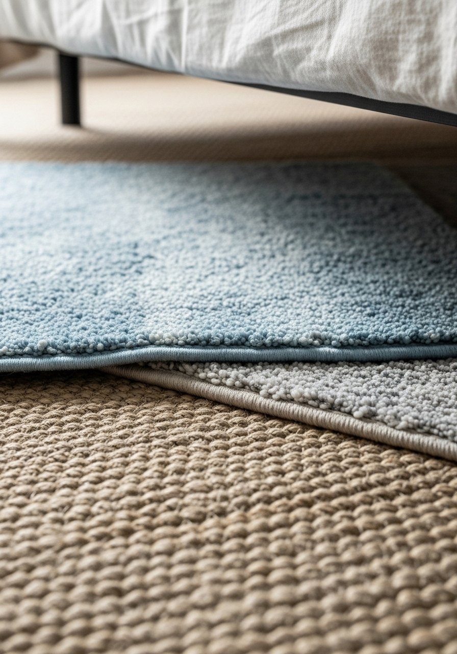 Rug layering adds dimension and protects floors. Choose a durable base rug and a softer accent rug where you step.