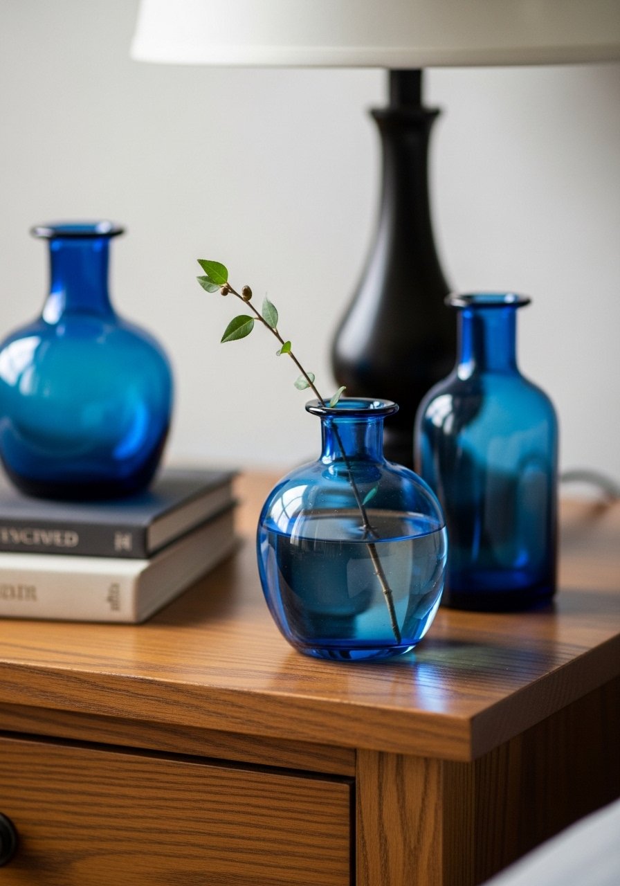 11. Small Blue Glass Vases for Nightstand Styling