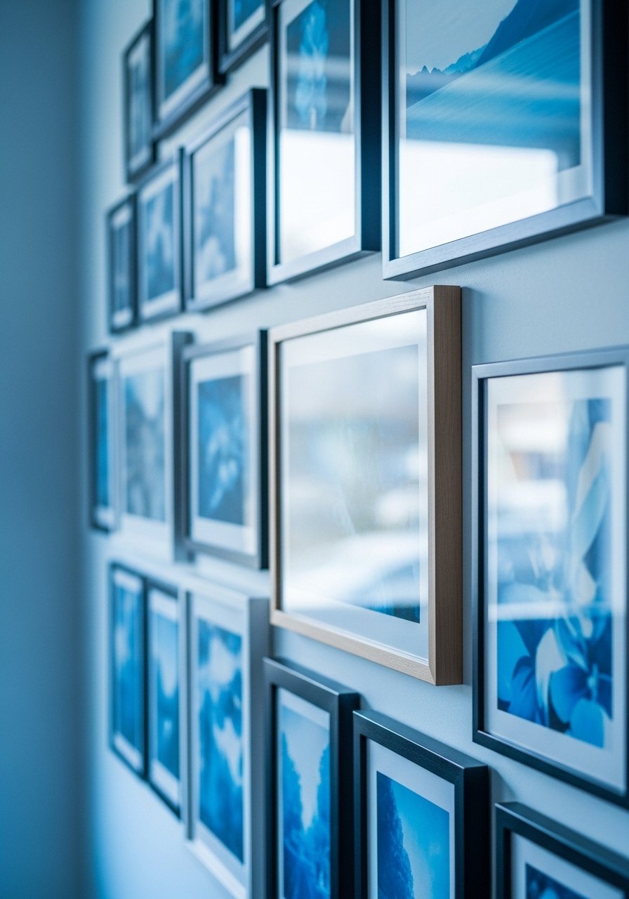16. Blue-Toned Gallery Wall with Family Photos