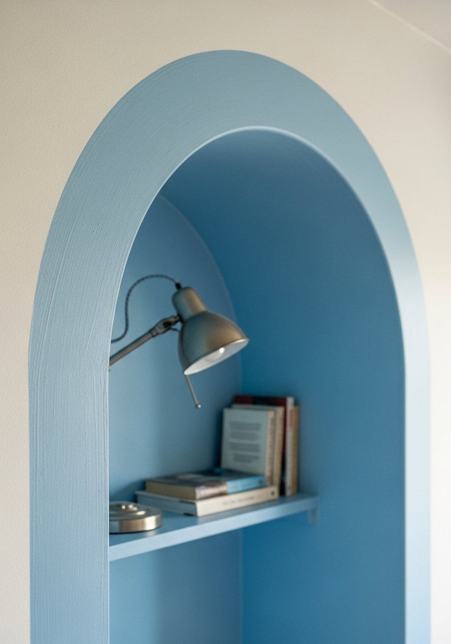 We painted an arched niche behind a bedside table and it became a cozy focal point. The shape is forgiving and the light blue paint made the niche feel intentional. I did try painting the whole wall first and it felt heavy; the alcove was the smarter choice.